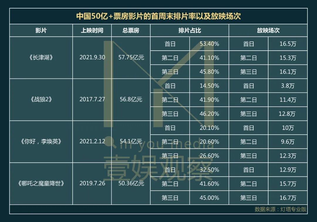《独行月球》横向对比50亿+俱乐部影片的首周末排片占比以及反映场次,都具备明显的市场空间优势。