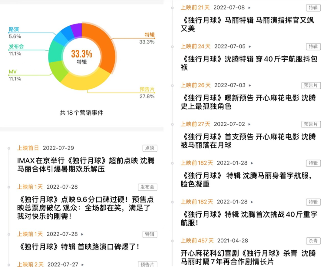 从今年1月底的首支预告片,到暑期档期间影片物料频频释出,《独行月球》始终保持着充分热度。主演沈腾、马丽也在各大综艺节目中卖力宣传,使观众对于影片的期待值不断高涨。