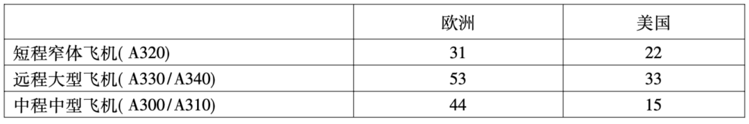 截至1993年,在短程窄体飞机(A320)、远程大型飞机(A330/A340)及中程中型飞机(A300/A310)三种细分市场上,空客在欧洲市场的份额都明显超过其在美国市场的表现(见表5)。可以说,在空客成长的前30年,欧洲本土市场的大力支持帮助空客走过成长的爬坡期,而欧洲一体化促进了欧洲本土航空公司对空客飞机的采购。