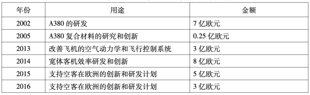 此外,欧洲国家战略互信还使空客成员国政府为空客项目提供研发资金支持的意愿和能力大大加强。作为企业联合体,空客集团本身不具备独立的财务能力,需要成员国的大量财务支持,这也是20世纪80年代美国对空客发起补贴申诉的主要缘由。有关空客所获得的政府援助数额散落在不同的文献和报告中,而且这些数字差异很大。英、法、德三大国财政力量的汇聚帮助空客承受住前20年的持续财务亏空,并矢志不渝地专注于不同机型的研发。