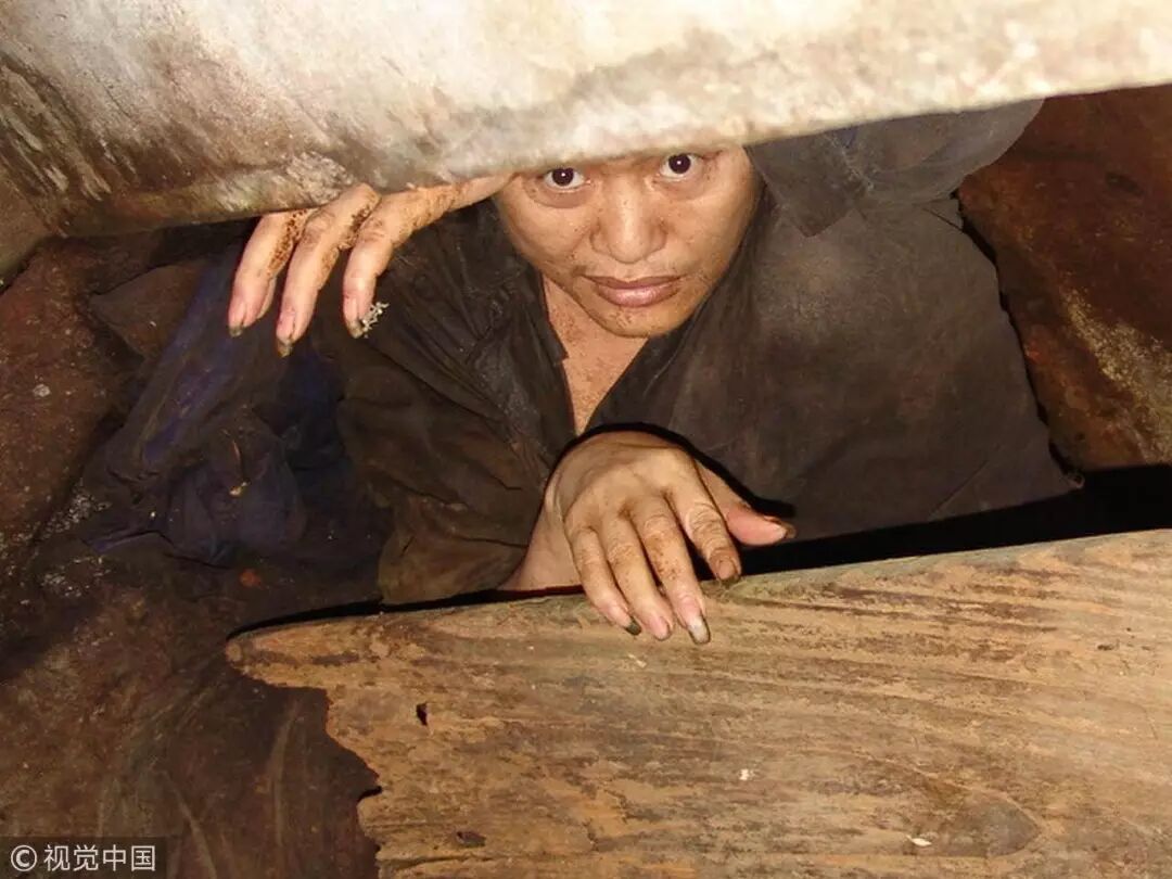 2004年5月20日,海南琼海群良村,董业志因文革期间被多次批斗出现精神反常,被自己96岁的父亲关押了26年 / 视觉中国
