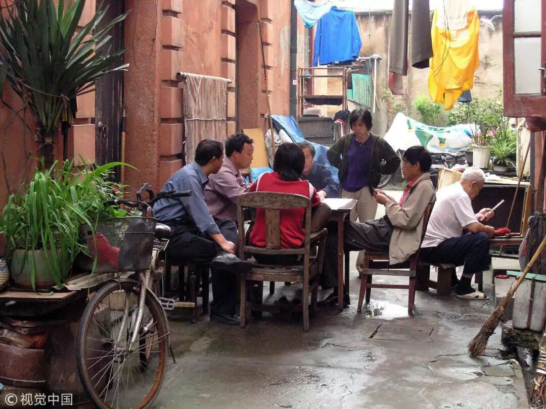 2003年12月13日,上海石库门居民在弄堂里打牌 / 视觉中国