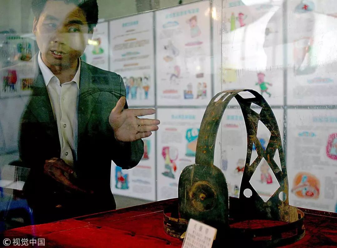 2004年11月3日,长春市工人文化宫内举办中国性文化展,展出的中国古代性文物贞操带 / 视觉中国