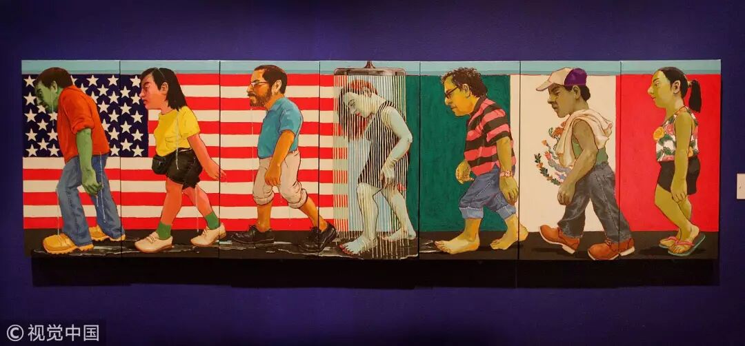 2008年7月9日,美国芝加哥一移民主题艺术作品展上的作品 / 视觉中国