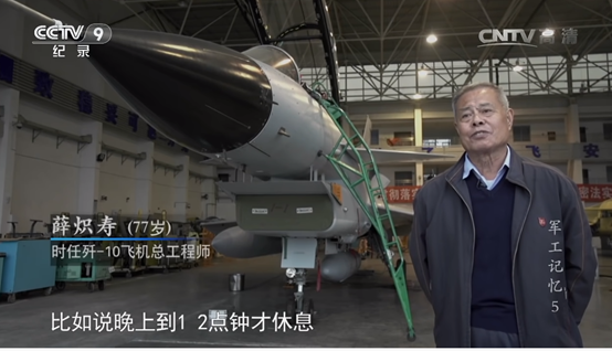 歼十的总工程师薛炽寿,当时被任命为成飞制造歼十的现场副总指挥,他说“那时候是跟着飞机走,就是在车间里转,休息很少,比如说到晚上一两点钟才休息,有时候到了5点钟才回去,5点钟回去以后,到了8点钟又来了”