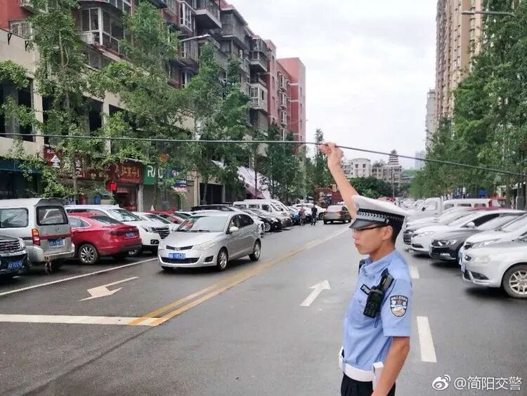 四川简阳辅警雨中当“人体电线杆”