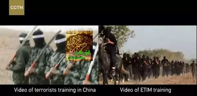 纪录片中,曾在“东伊运”“宣传部门”工作的毛拉洪曾协助制作暴恐音视频材料。毛拉洪说,实际上很多视频都是假的,为了招募成员,他们会聚集二三十人穿上市场上买的迷彩服假装“人多势众”。