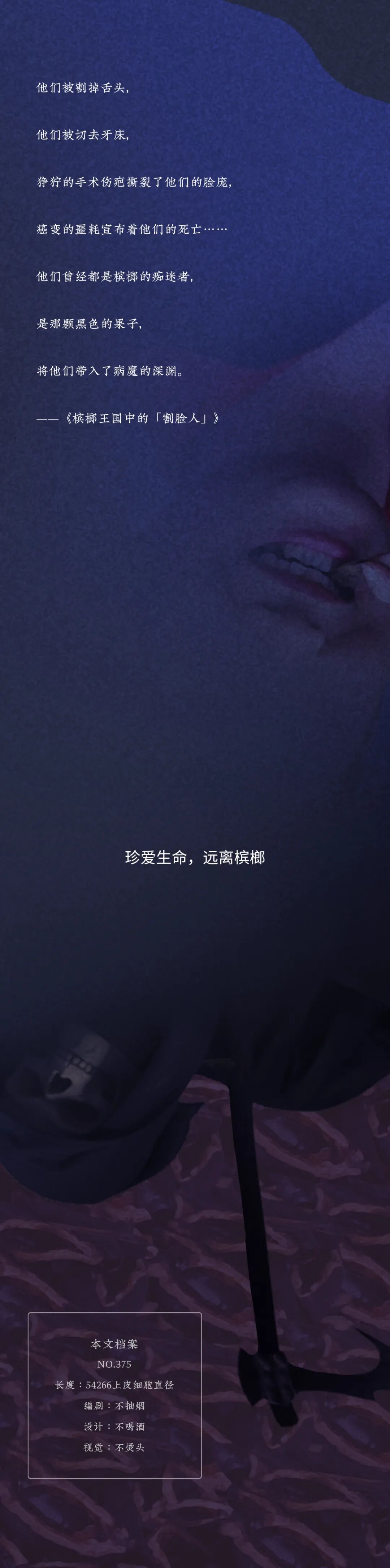 由此也可推算出:长期嚼槟榔,最终死于口腔癌的比率至少有2%左右,也就是1/50。