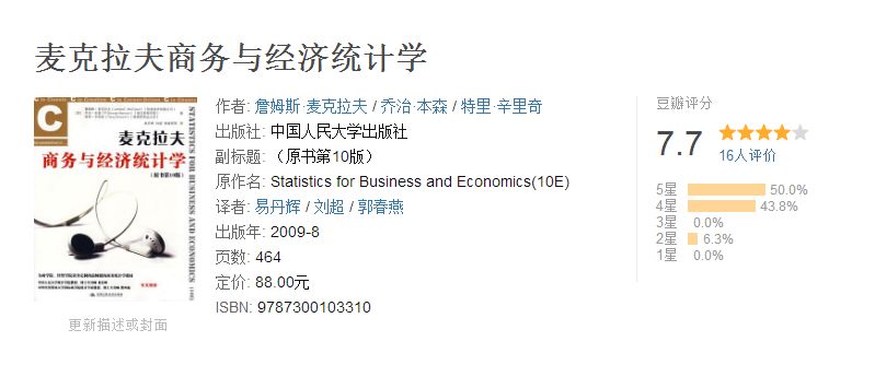 6、《麦克拉夫商务与经济统计学》 44人推荐