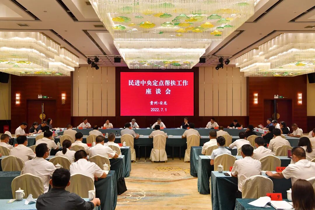 7月1日上午,刘新成在安龙出席民进中央定点帮扶工作座谈会并讲话。座谈会由王刚主持。