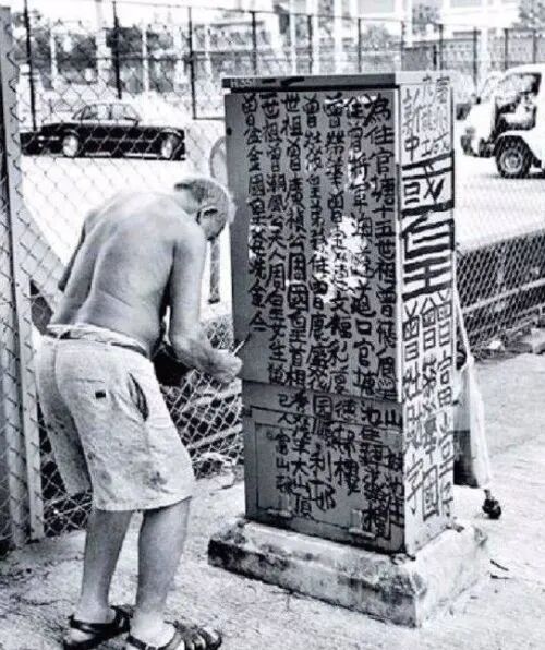曾灶财的一生,严格意义上的一生,都在做这一件作品,街头书法写了整整50年,同样登上过时代周刊,是中国本土名声最大的涂鸦艺术家!