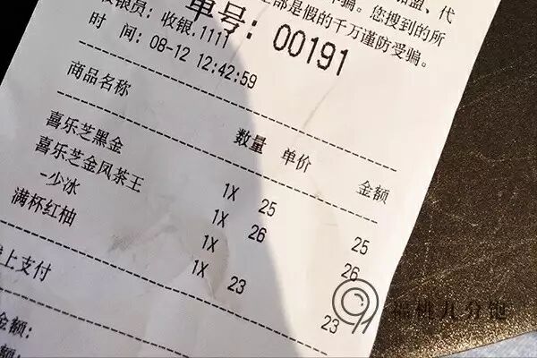 两小时四十二分钟后,饱妹终于拿到了那张珍贵的点单小票。网红款满杯红柚,招牌款喜乐芝金凤茶王,以及三里屯店限定款喜乐芝黑金。听着特别叼炸酷炫对不对?感觉自己一下子被提升了对不对?然鹅完全不知道这是啥对不对?