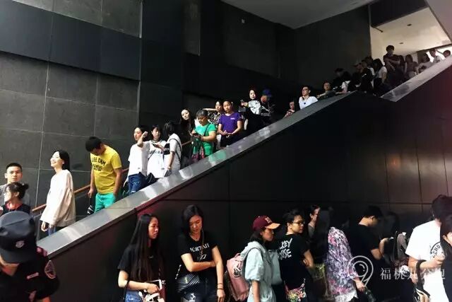 一个小时后,外面雨势越来越大,队伍已经再次拐弯直接上楼,店员开始为排队的顾客送水。
