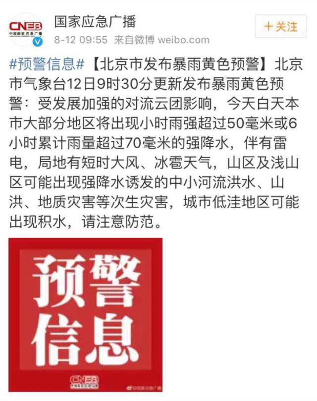 今天一早,饱妹就接连收到北京市暴雨黄色预警的推送消息。