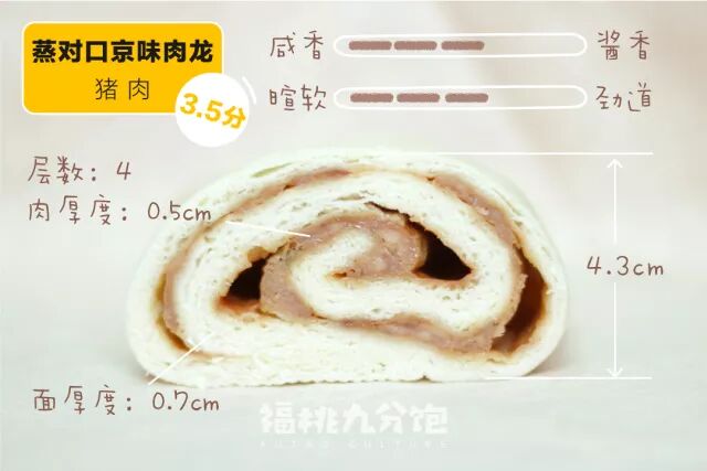 一分真的不能再多,虽然是因为儿子爱吃才做的懒龙,但是一口咬下去全都是面啊,看侧面图也能看出来整个肉馅儿只有薄薄一层,里面还有大量的葱,面皮也是硬硬的,并且3块钱只有一小块,性价比真的太低了!