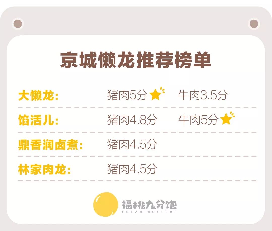 根据北京朋友的回忆以及“大懒龙”、“馅活儿”店员的叙述,以下是我们的测评标准: