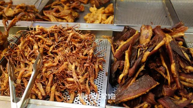 温州的油渣很不一样,不是小丁油渣,而是大块的五花肉炼制的,刚炸出来的酥脆喷香,好吃到泪目,还有一种炸酥排骨,可供不愿意吃肥肉的妹子享用。