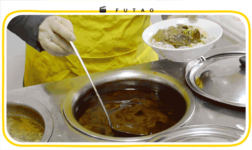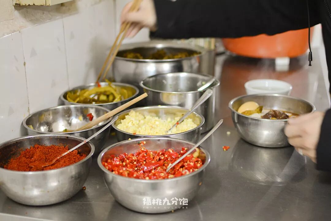 此时粉店老板们都在忙着同一件事——做浇头。浇头即码子,是常德米粉的灵魂。赋予米粉不同风味的,就在于最后那一勺浇头。