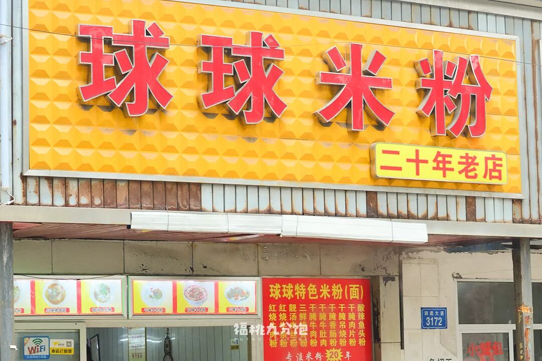 文理学院旁边的球球米粉开了二十多年,一走进店里,就看到几张铺着红布的大圆桌,像极了老式酒楼。