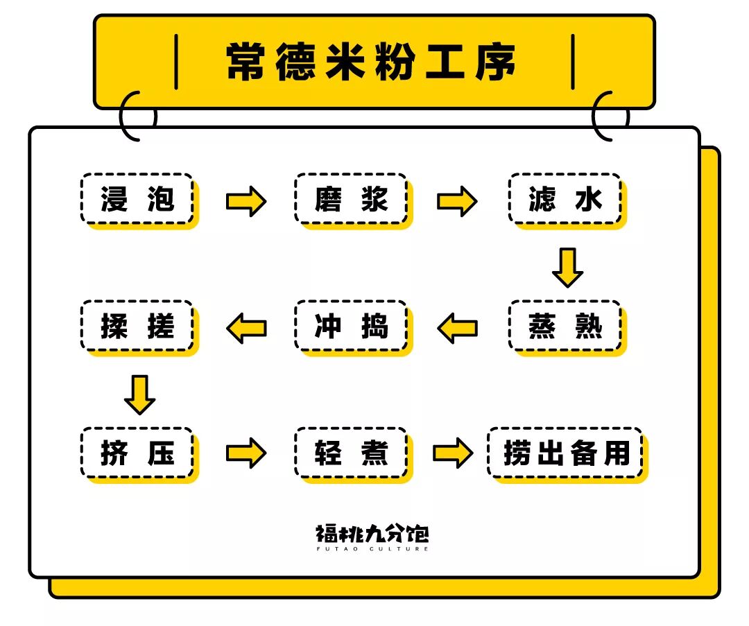 是啊,离了沅江水和洞庭湖粳稻米,哪儿还有资格叫常德米粉呢。常德地处洞庭湖西侧,湖南四大水系中的沅水、澧水横贯而过,水资源丰富。沅水水质好,粳稻米粘性大,有了这两样原料,做出来的米粉才具有韧性,不易折断。选好了米,还得经过浸泡、磨浆、滤水等九道复杂的工序。