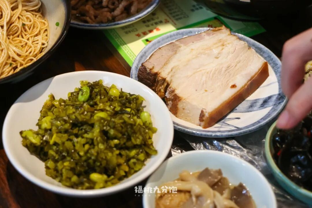 而遇到繁忙的早晨,就是吃一碗面:吃面要快,慢的话面就会坨了。热腾腾端上来,主食(面条)、主菜(浇头)、汤汇于一碗,5分钟嗦完,一抹嘴跟旁边朋友聊几句今天的米价盐价和新闻趣事,方面快捷。