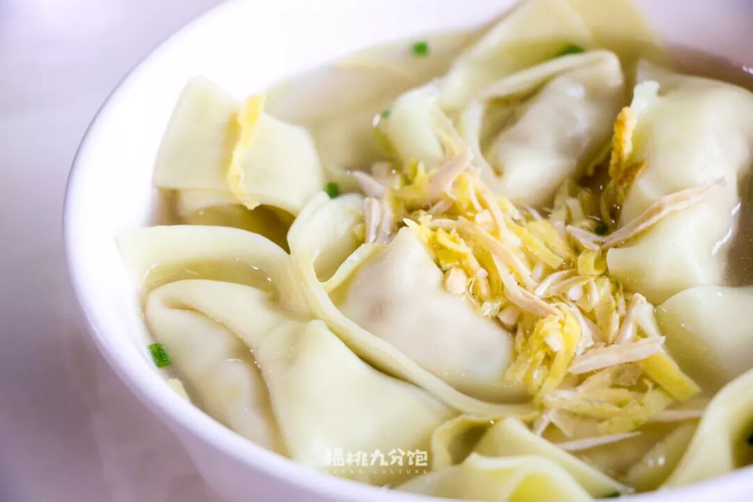 比如临顿路上的绿杨馄饨。虾肉大馄饨个大饱满,鸡汤做底,撒蛋丝香干丝,一把葱花,滚滚烫端上来。