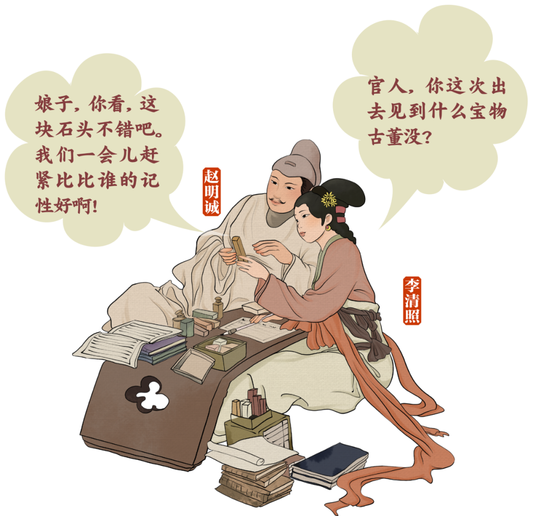 俩人吟诗作画,琴瑟和鸣,有“赌书泼茶”典故。每次饭后一起烹茶时,用比赛方式决定饮茶先后,一人问某典故出自哪本书哪一卷第几页第几行,对方答中先喝,可赢者往往因为太过开心,反而将茶水洒了一身。