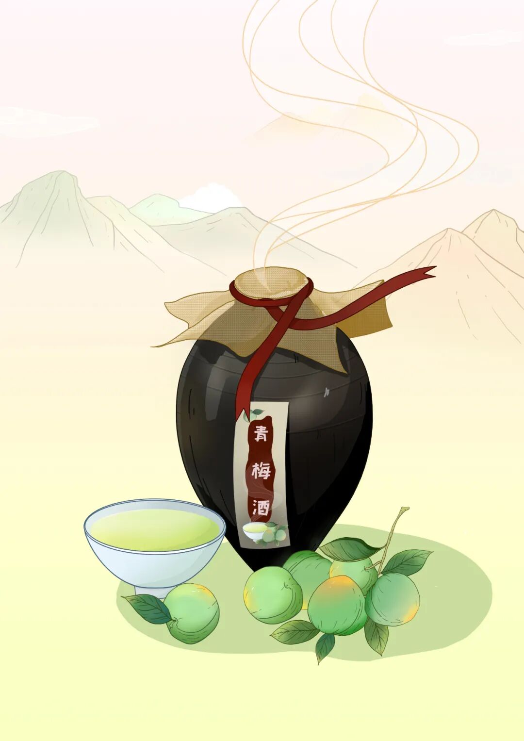 中国国家地理旗下品牌青梅,又称梅子、酸梅,生于初春,熟于初夏。酸甜的滋味,带出了蜜饯、菜肴乃至酒的甘、醇、涩口和回甜;青亮的外形,凝聚了中国人对往昔、对年少的追忆,对浪漫、对诗意的追求。中国人的诗意,在这枚小小的青果里被无限延展,让人心生向往。芒种前后,长江中下游地区将进入多雨时节。天空总是阴沉沉灰蒙蒙的,雨淅沥沥地下着,湿气三四天散不去。这雨因在梅子黄熟的季节来临,故被称作“梅雨”。对于南方人来说,梅雨季闷热难耐且器物易霉,并不好过。即便如此,这时也有值得开心的东西。这个季节,可正是梅子黄时。宋代贺铸在《青玉案·横塘路》中留下了流传千古名句:“试问闲愁都几许?一川烟草,满城风絮,梅子黄时雨。”梅子与雨,古往今来,一向是文人们口中抒发怀才不遇的借代,大概是因为梅子本味就带有酸楚的原因,从意蕴上便沾染了几分愁意。梅子的确极酸,想到它的味道就能让人瞬间分泌出口水来。成语“望梅止渴”就是例证。东汉末年,魏兵南下,行军途中,天气太热,无处找水,人人口干舌燥,渴不堪言。曹操对众将士说,前边不远有梅林,将士们一听,想起梅的酸味,口水立出。由此,“吴人谓梅子为曹公”。芒种时节吃梅的习俗由来已久,除了因其是时令物产,还有另外一个原因。芒种是农历二十四节气中的第九个节气,夏季的第三个节气。这时节,小麦将熟,芒指的便是麦芒,种则是种子成熟与播种的意思。《月令七十二候集解》道:“五月节,谓有芒之种谷可稼种矣。”在炎热的日子里,农人们要忙着播种、抢收、防治植物虫病。因昼长夜短,气温升高,不要说忙碌的农人会时常大汗淋漓,即便是不去劳作也一样闷热难耐,人体因排汗而导致微量元素流失。人们常说“夏打盹”,原因就与这样的气候有关。而梅子含有大量矿物质与氨基酸,对人体心脑血管的保养有着很好的作用。可见,吃梅倒是芒种时节不可或缺的养生果品了。![]()