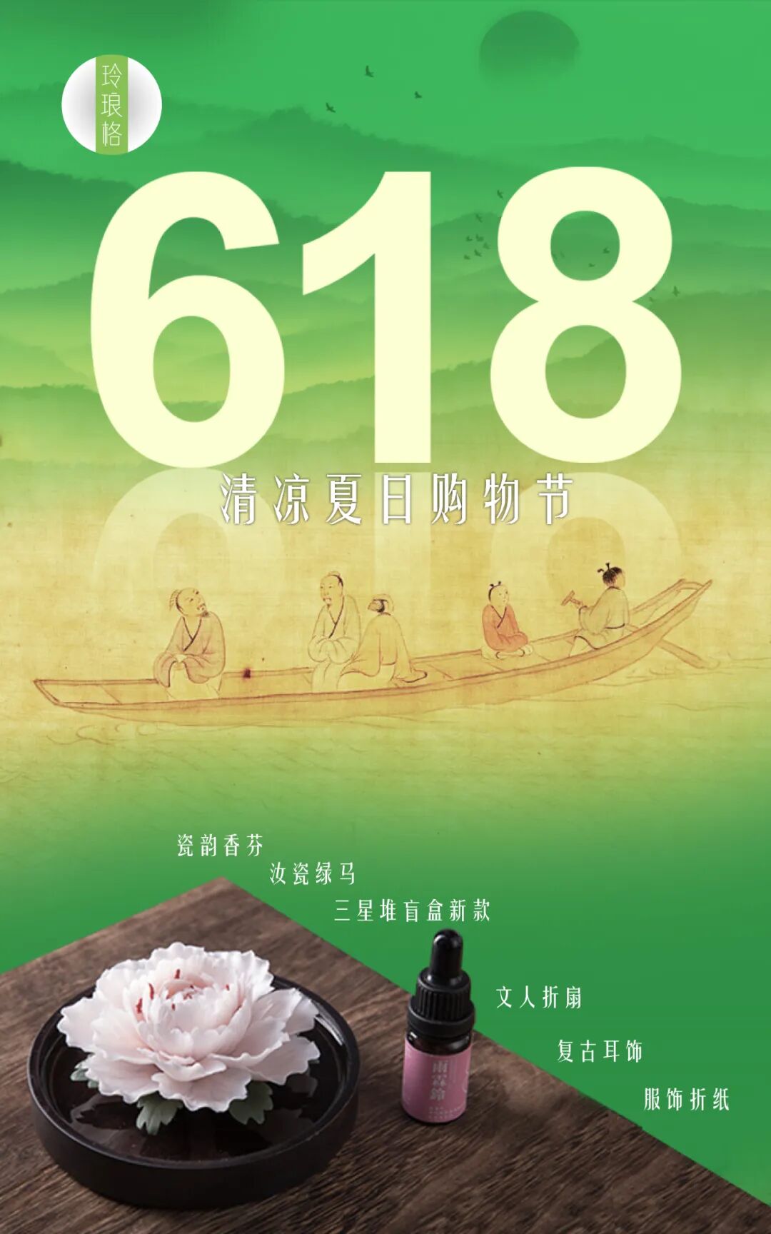 永生花瓷韵香氛、汝瓷绿马、文人金句折扇,