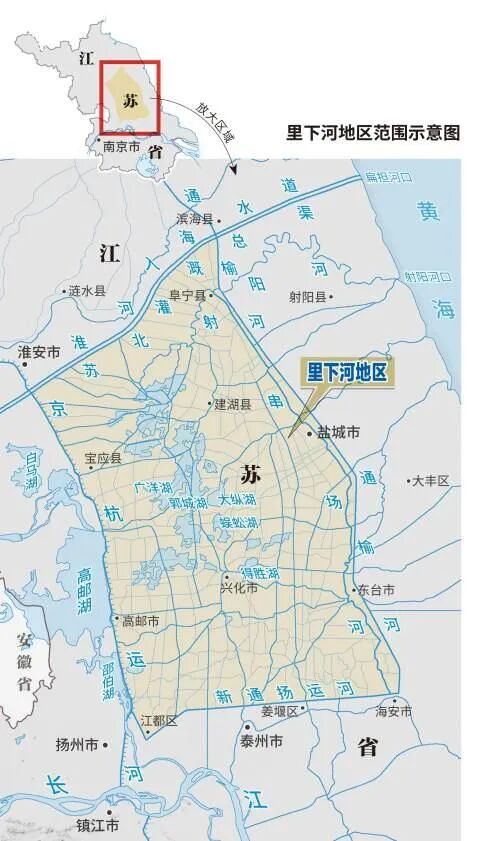 里下河,并不是一条河,而是一个美丽富饶的区域,它位于江苏省中部,西起里运河,东至串场河,北自苏北灌溉总渠,南抵老通扬运河,涉及江苏省扬州、泰州、盐城、淮安、南通等主要城市,总面积近1.4万平方公里,是苏北平原的重要组成部分。因里下河简称“里河”,串场河俗称“下河”,平原介于这两条河道之间,故称里下河平原即里下河地区。在地图上看,里下河地区就像一个“口”字形。因地形四周高,中间低,形如锅底,有“锅底洼”之称。如果说少山多平原的江苏是一只平坦的手掌,那么里下河就是微凹的“掌心”。![]()