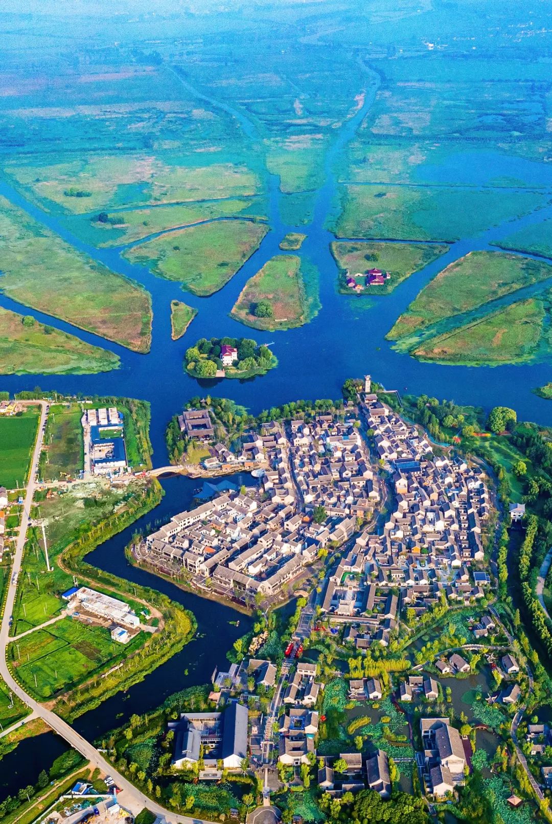 因为是低地,里下河不仅收纳了水,也承载着大量的土——和长江以南有烟波浩渺的太湖不同,里下河没有大的湖泊,汉代时“阔三十里,周三百里”的射阳大湖,在泥沙千百年的淤积作用下,渐渐被淤塞、分割,变成连绵的湿地和众多连缀的浅水湖荡,再加上大量为运盐、治水等目的人工开挖的河道。今天,这片“破碎”的平原,遍布稠密的水网,被纵横交叉的大小河道划分成无数大大小小的“片区”,七水绕村、十水汇城的奇妙场景也颇为常见。盐城市建湖县九龙口,就是一个九水绕镇的奇特之地,素有“金滩银荡”之称。如果说里下河是江苏的掌心,那么九龙口就是掌心里的一颗明珠。金天会六年(1128年),东京留守杜充为阻止金兵南下,人为决堤,使黄河汇入泗、颍、涡诸水入淮河,从此黄河离开了历经数干年东北向流入渤海的河道,改由淮河入海。明万历六年(1578年),受朝廷之命,潘季驯治理黄河,大筑堤防,堵塞决口,使黄河由汴入泗,由泗入淮,其“束水冲沙”之法再一次改变了江淮地区的自然人文环境。