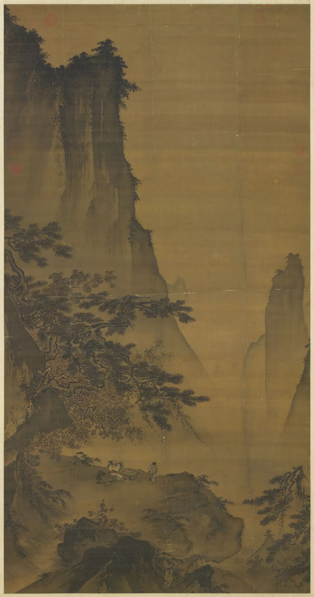 ▲ 中秋前后,因月球的潮汐作用,杭州湾钱塘江出海口便会出现盛大海潮的景象。因此,宋时兴起了观潮习俗,成为中秋节的一大活动。图为南宋《月夜看潮图 》,远山淡约空濛,水面之上浪奔潮急。
