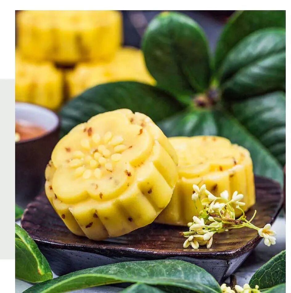▲ 宋代广寒糕以金桂、甘草水、米粉为原料。相传,宋代士子会在放榜前互赠广寒糕表示祝福,这是因为广寒糕被赋予“广寒高甲”之意,就像如今中秋节吃月饼意在团圆一样,讨一个好彩头。(图片来自杂志内页)
