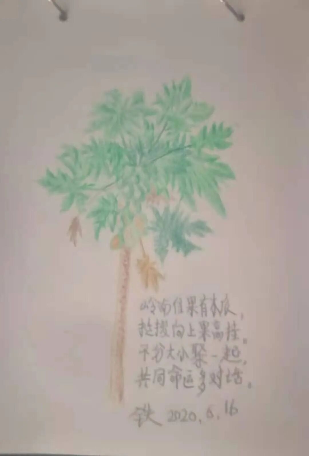 它与众瓜不同的是:不长在藤上攀附高枝,而是独自往上长,高高在上结硕果。一根树干直上,没枝杈,不弯腰,不低头。台风吹来,宁折不弯,太有气节了!![]()