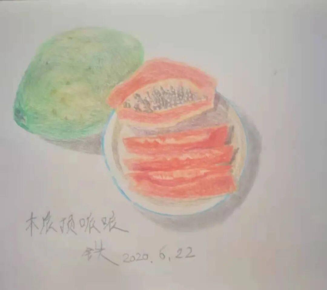 很喜欢吃水果,不时把它们涂抹在纸上,不知是学画画还是学画话。还是去年禁足时在网课中跟学绘画,前后花了六百多块。有时会发给朋友们乐一乐。涂抹中累了,不知是睡了做了梦,还是胡思乱想。好像进入水果中,听到它们闲聊。原来它们也有很多意见,对自己因相貌而被厌恶,名字也不好听……人们喜欢苹果,就因为名字好,苹就意味着平平安安。于是登门拜访亲友,到医院慰问病人,就必买苹果作为送人礼物。送亲友出远门时也送几个苹果以示祝他平平安安。特别是清明节拜祭先人,必然把苹果摆在墓前,希望先人在那边也要平平安安,保佑后代。 苹果们成熟后从树上下来,就等待人们的挑拣了。果农要挑它们分等装箱,买的人也要挑挑拣拣。如果苹果有意识的话,没被挑走看中的苹果必然不耐烦了,为不平等待遇发牢骚了:“它们被看中,不就是圆滑吗?我们不那么圆滑就该倒霉了?”可能买的人也会从中悟出道理:不够圆滑光鲜会被抛弃……