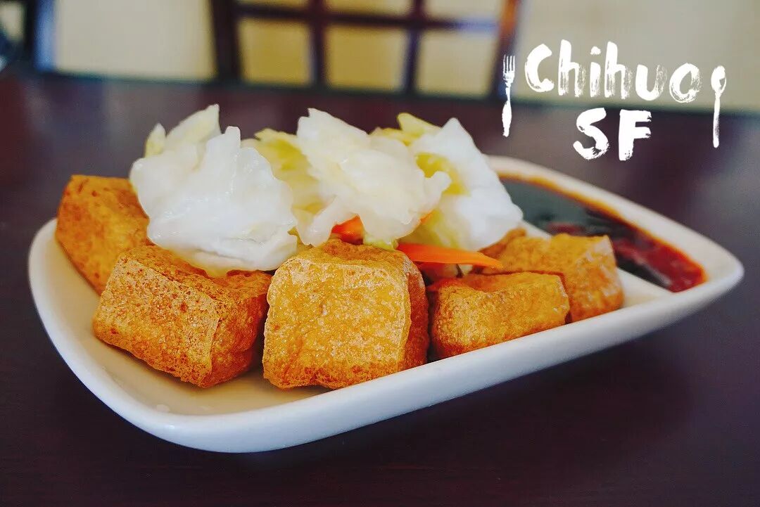 用筷子戳一戳,感觉有点硬,但咬一口那松脆!臭臭的香味伴随着每个气孔呼之欲出,此时蘸酱,让酱的味道沉浸到气孔里,加上泡菜吃,松脆+清脆的双重脆感让这道菜非常出彩。