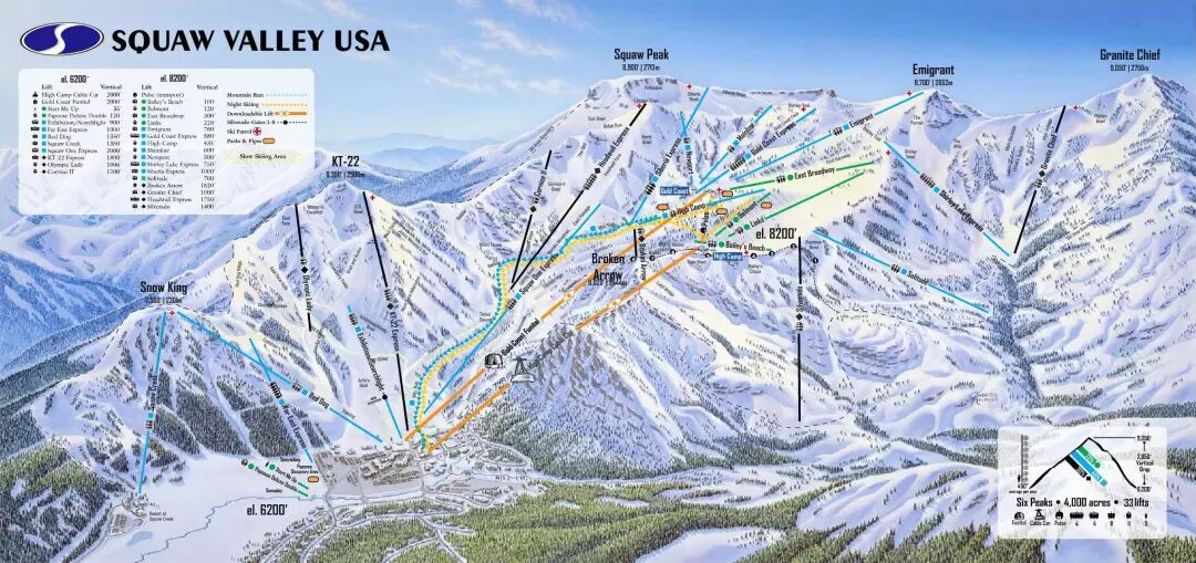 现在两个雪场可以共用一张pass,42条缆车索道,270余雪道,14个滑雪地形区,没错,这里可是美国最大滑雪场!