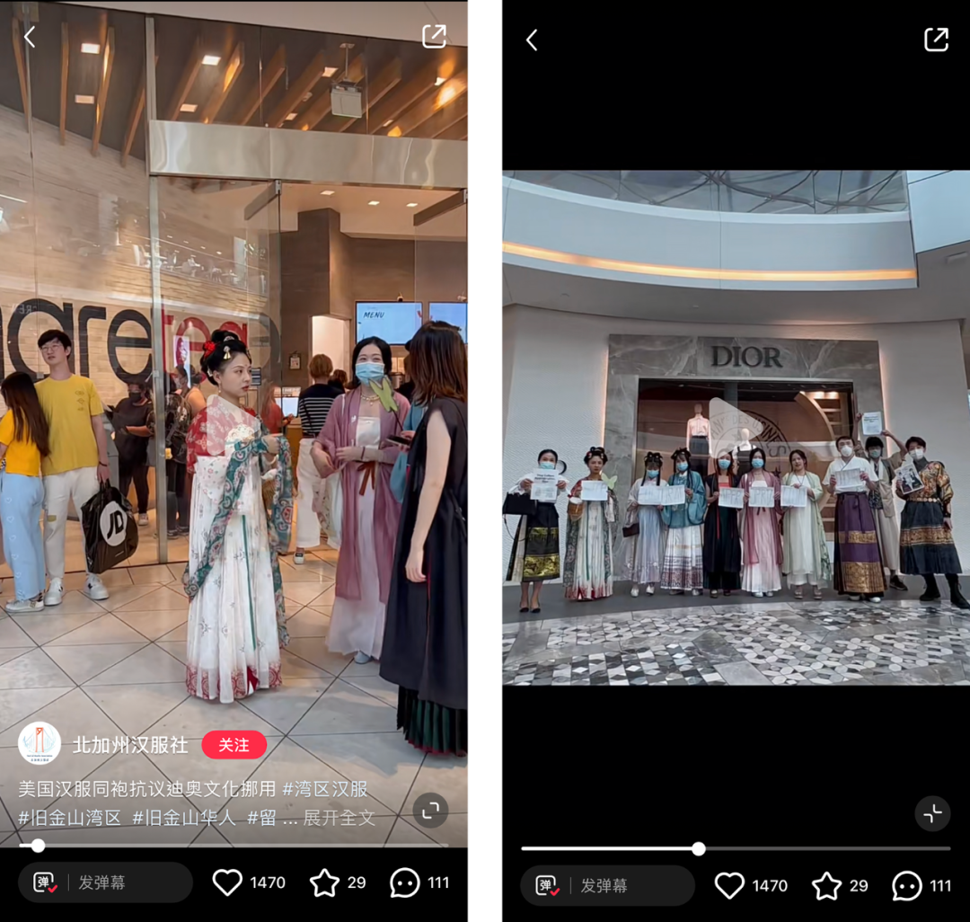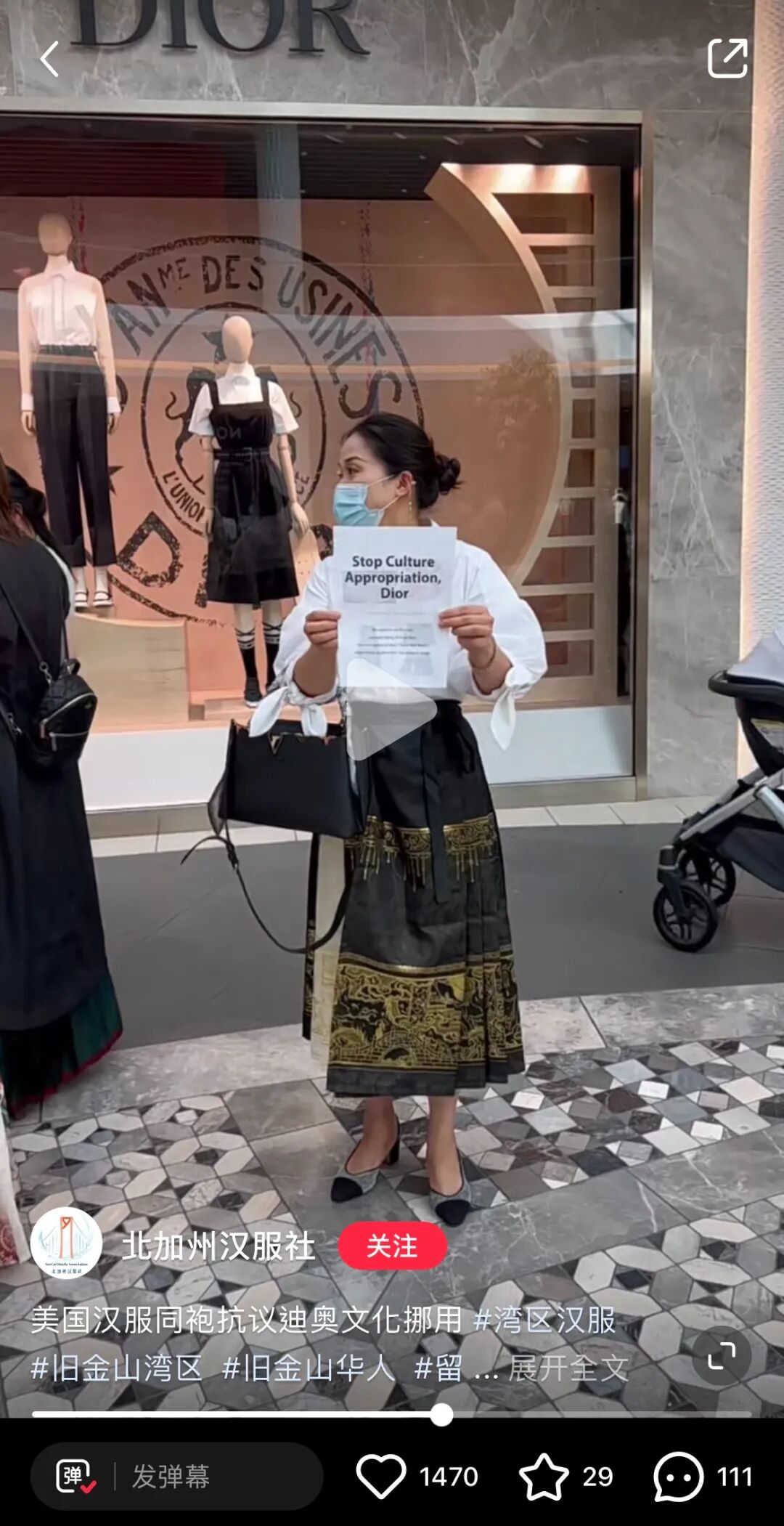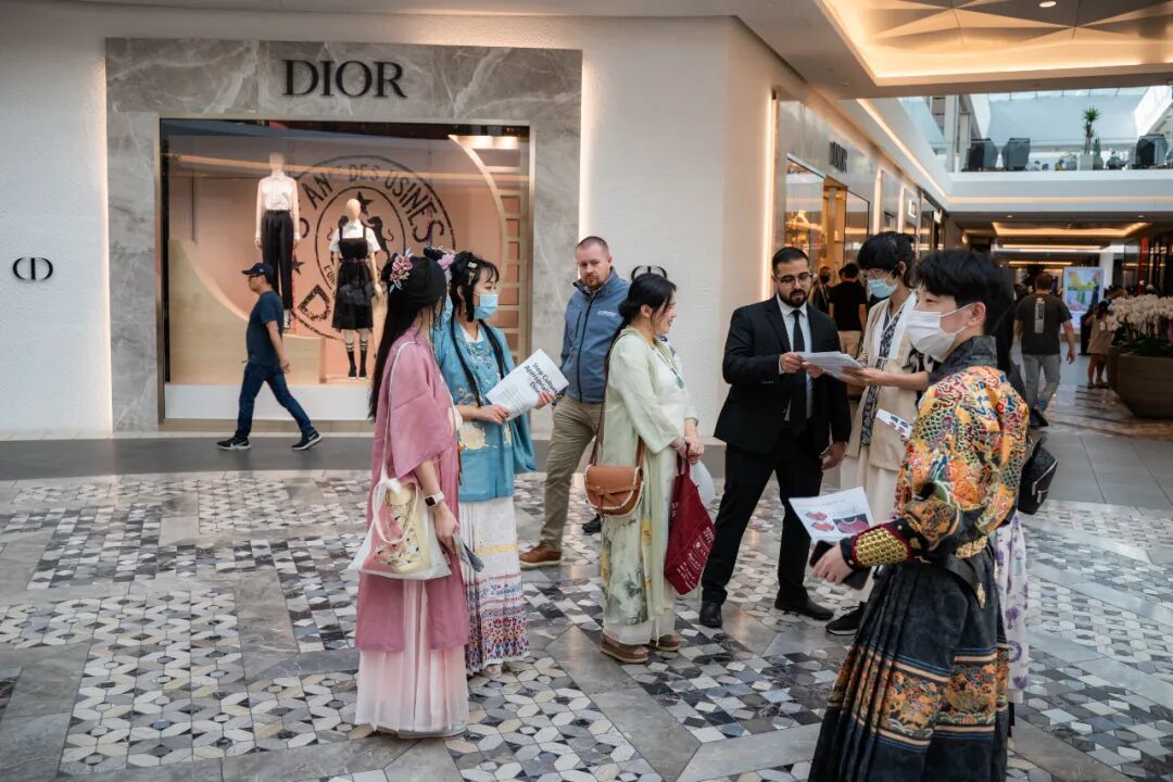 20多名来自咱们湾区北加州汉服社的社员们,身着传统汉服,到San Jose Westfield Valley Fair的迪奥门店抗议文化挪用.