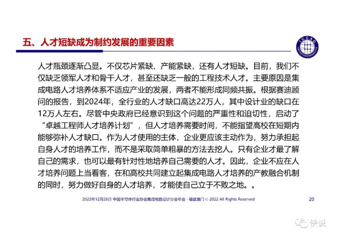 但另外一方面,产品技术水平不够高、研发投入不足、政策不连贯、人员浮动等因素造成企业发展迟缓,龙头企业发展进入瓶颈期,特别是十大芯片设计企业的发展乏善可陈。此外,产业资源配置不合理以及人才短缺严重影响了产业发展。