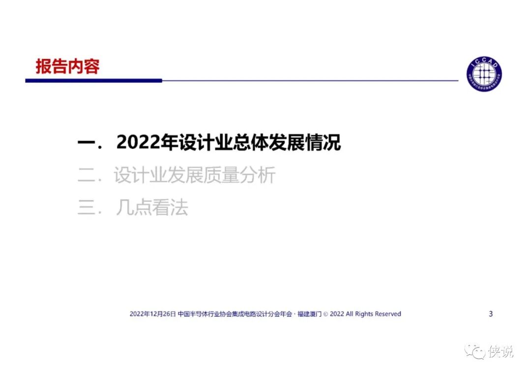 12月26日,“中国集成电路设计业2022年会暨厦门集成电路产业创新发展高峰论坛(ICCAD 2022)”在厦门国际会展中心隆重召开,中国半导体行业协会集成电路设计分会理事长魏少军教授为大会作了题为《以持续创新赢得美好未来》的主旨报告。