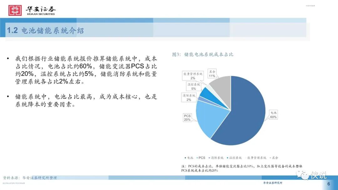 储能系统中,电池占比最高,成为成本核心,也是系统降本的重要因素。