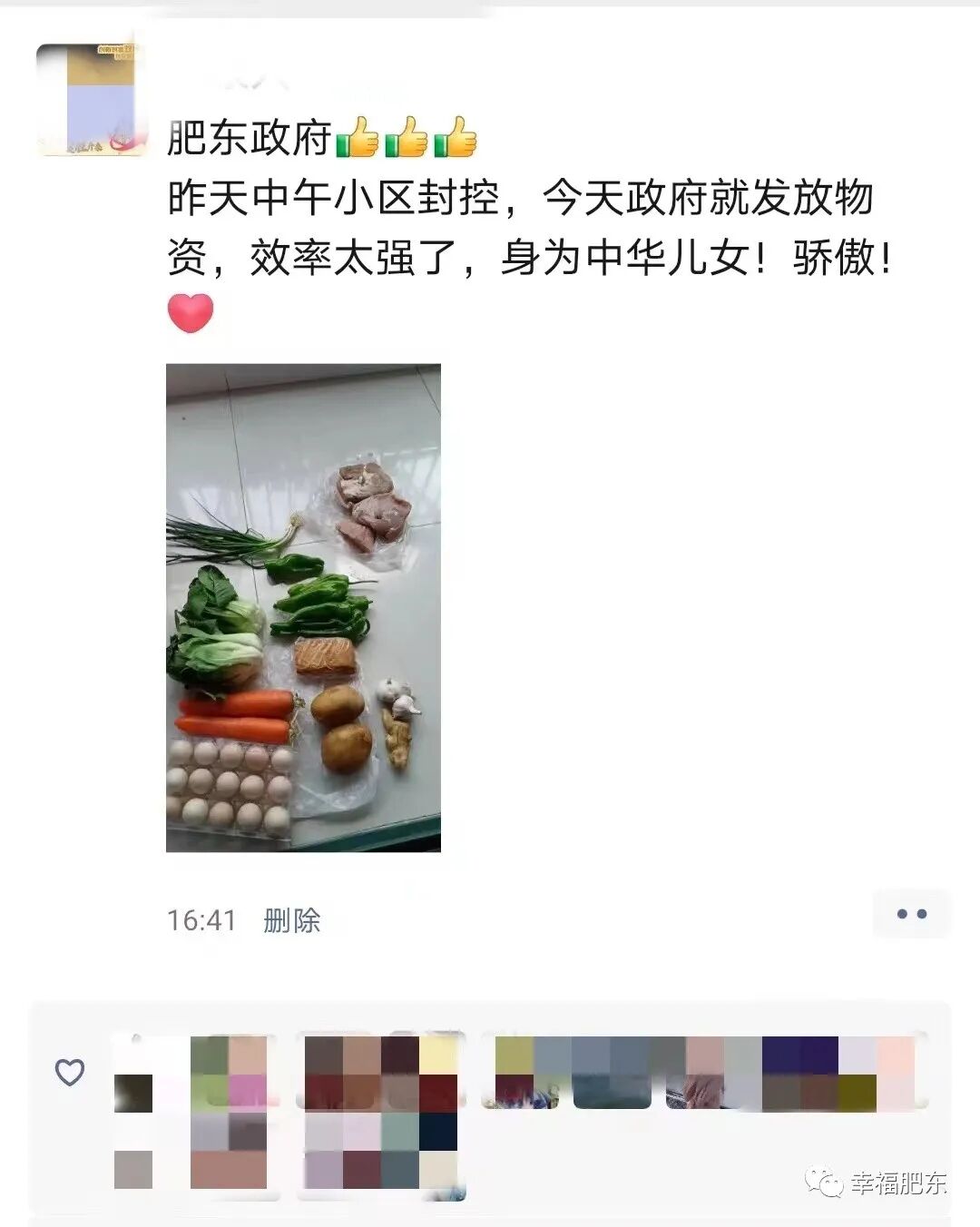 肥东封控小区居民陆续收到