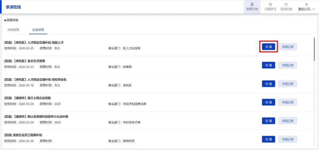 (一)请详细阅读政策内容后,点击“兑现”服务