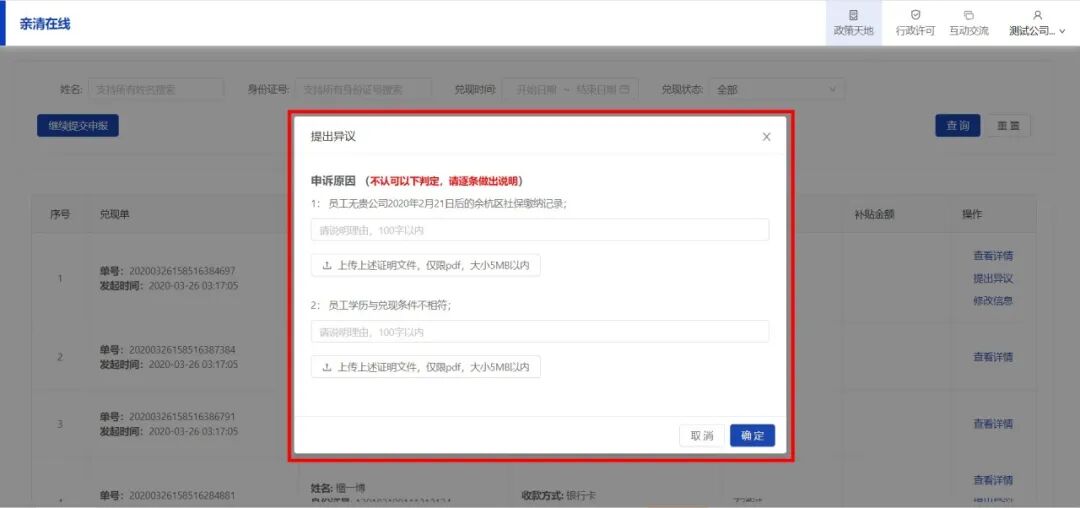 针对每条“不通过名单”的原因可输入申诉说明。