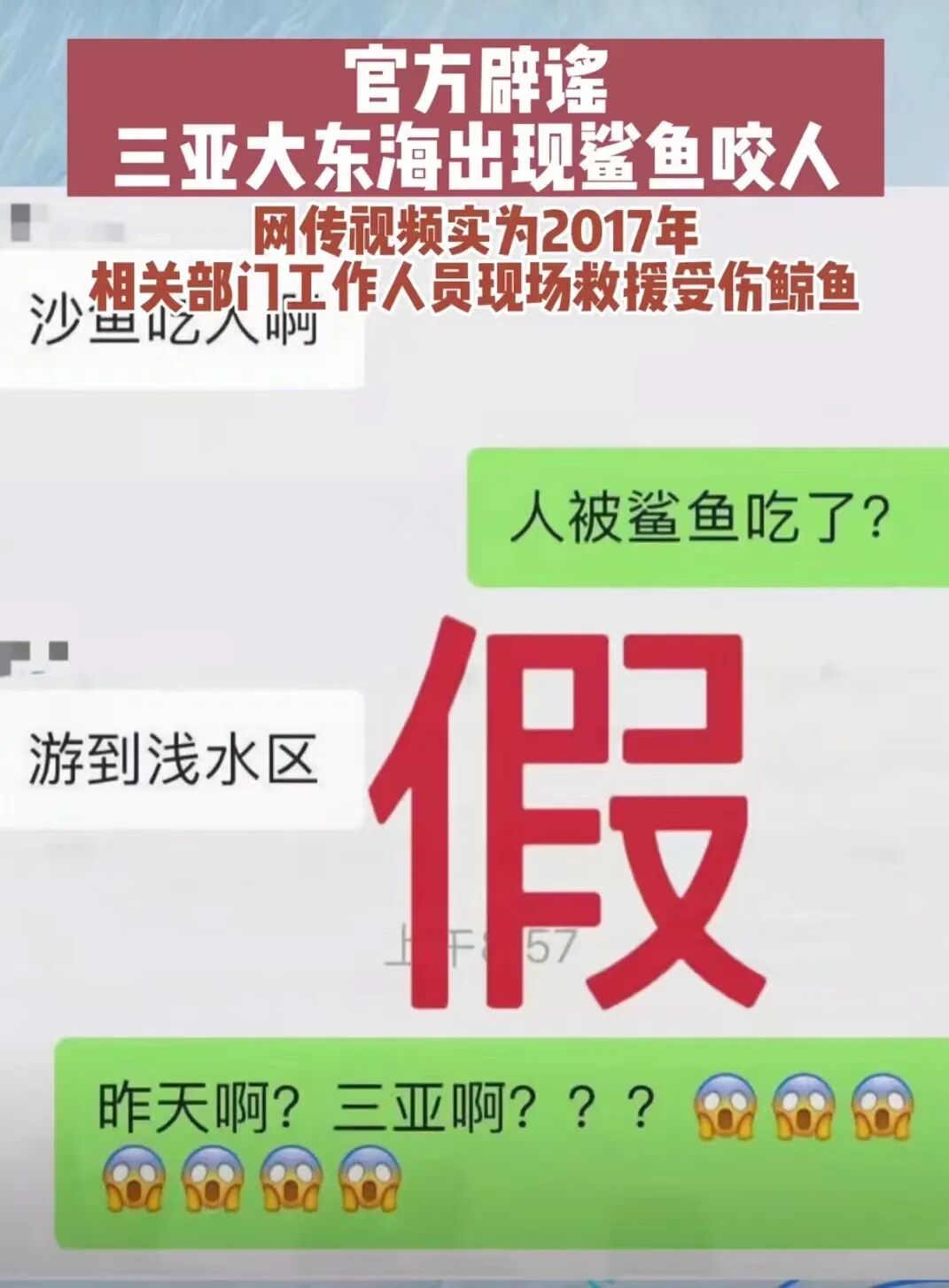 今年的热搜换了一个画风,说是今天三亚大东海的海滩上出现鲨鱼咬人。流传的聊天记录绘声绘色,还有视频为证,被许多人当作爆炸性消息来转发。