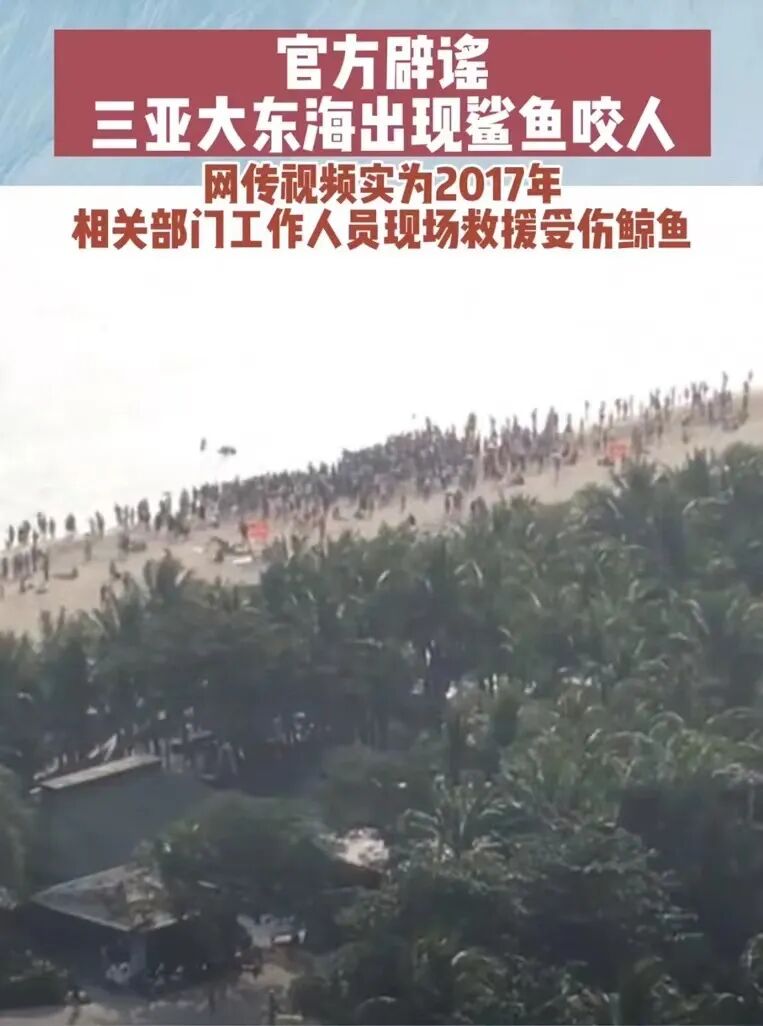所谓鲨鱼游近海滩咬人的视频,其实是2017年当地救助一头受伤搁浅鲸的画面,被人添油加醋越传越离谱。