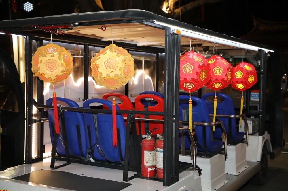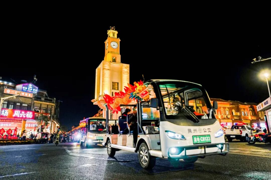 作为启动仪式的重头戏,花车出行巡展发车仪式随之举行,20部“小白”悬挂着一盏盏精美的花灯,从府文庙出发,沿着打锡街、中山中路、中山北路、北门街等地,一路巡游,再现闽南春节元宵花车巡游的传统风俗,这也是微型花车自2005年后,时隔18年再次登场,吸引了众多市民游客围观拍照。