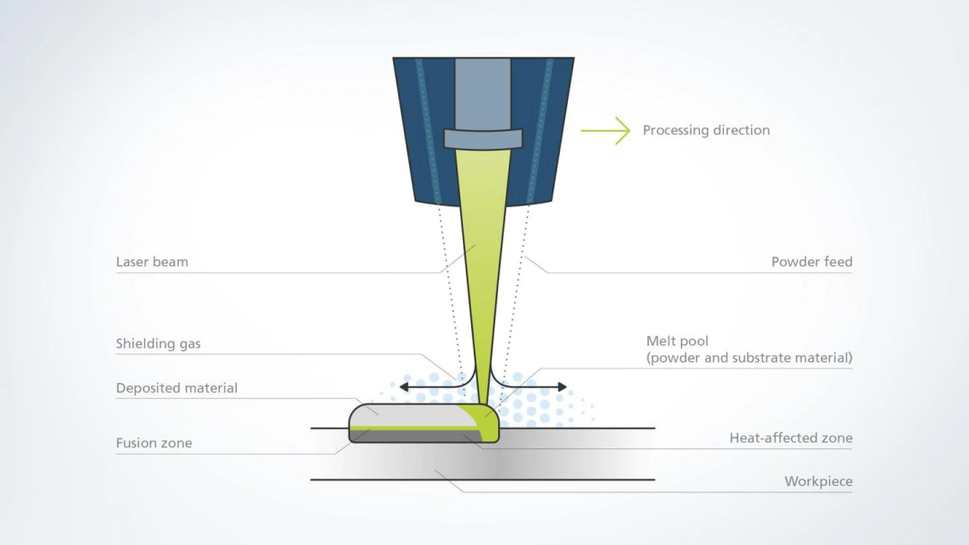 常用工艺:MJF(多喷射熔合)、NPJ(纳米粒子喷射)描述:这项技术使用喷墨将一种粘合剂选择性滴在平坦的粉末床上。接收液滴的区域将被固化,其余粉末保持松散。逐层进行以上步骤,直到生成整个对象。使用这项工艺可以处理金属、沙子、陶瓷等材料。由于金属粘合剂喷射机在室温下运行,不会发生翘曲且不需要支撑。因此,粘合剂喷射机可以比粉末床融合机大得多,并且可以堆叠物体,充分利用整个构建室,是小批量生产和按需制造的流行选择。技术优点:可以大体积打印,零件不需要连接到构建板上,因此可以嵌套以利用所有可用的构建体积。对几何体限制较少,通常不需要支撑。不会发生翘曲,因此可以制作更大的零件。打印速度非常快,比粉末床熔融金属打印成本更低。技术缺点:部件在打印后必须经过耗时的脱脂和炉烧结过程,机器和材料成本高。孔隙率高于粉末床熔合,因此机械性能不那么好,且可选材料较少。直接能量沉积