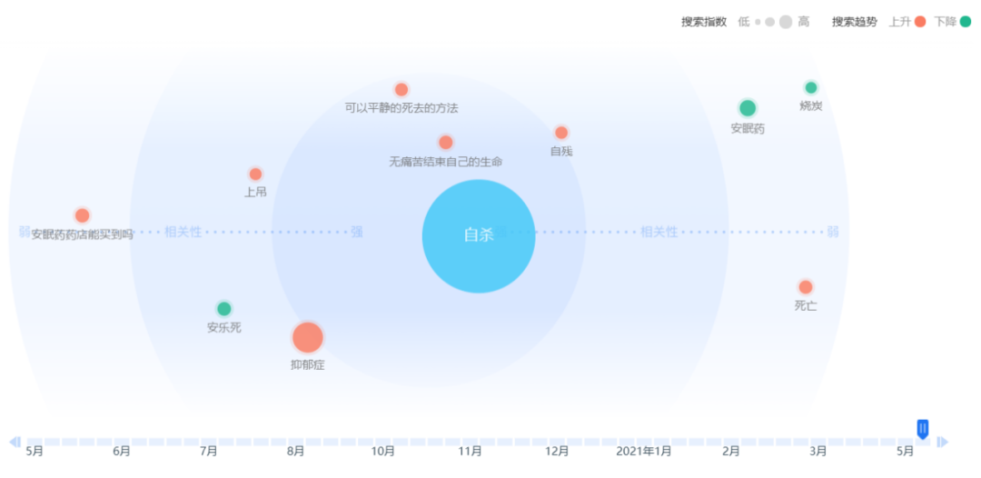 每天,在三大搜索引擎上,有3.5万人在搜索“自杀”。进一步挖掘关联词,每天超过1000人搜索的词条还包括:“活的没意思”、“想自杀”、“如何自杀”“自杀的方法”“烧炭自杀”“安眠药自杀”“上吊”“跳楼”“可以平静死去的方法”“无痛苦结束自己的生命”等。让人触目惊心。 曾经有一个母亲,在孩子的搜索记录中,学会了28种自杀的方法。 一项社会调查显示:上海地区有24.39%的中小学生曾有自杀想法,认真考虑过自杀的占到15.23%,更有5.85%的孩子曾计划自杀,有1.71%的中小学生自杀未遂。
