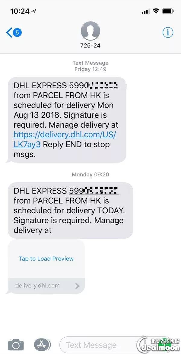 因为最近实在是太忙,没有时间过去纽约门店自提,所以就让跑跑他们直接快递到家,发货以后会有一个DHL的单号。楼主是直接收到的DHL短信(因为当时提供的收件人电话是自己的)。周五发的货,周一就收到啦~实在是太迅速!简直堪比国内运单了有木有,超开心的!
